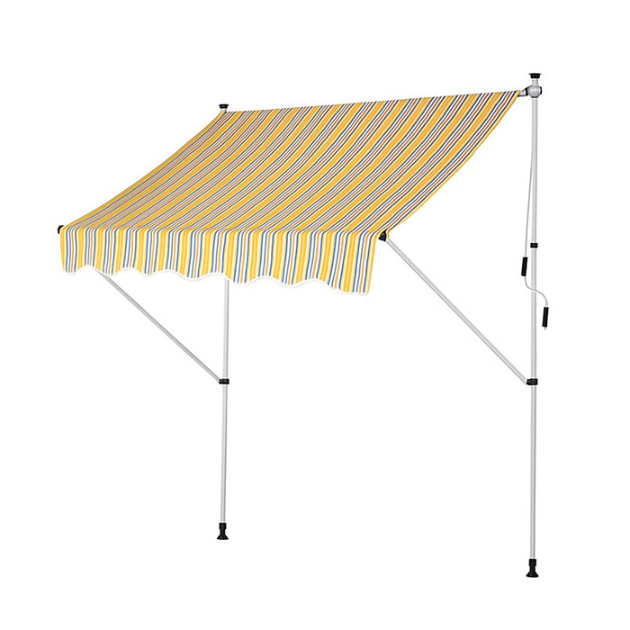 Le store banne sans perçage rayé LD-FSA-008YWB se démarque par sa toile à fort contraste, jaune, blanc et noir. Il attire l’attention tout en gardant vos clients au frais et protégés. Sur une terrasse de café, un trottoir commerçant ou dans un jardin, il apporte à la fois utilité et style.