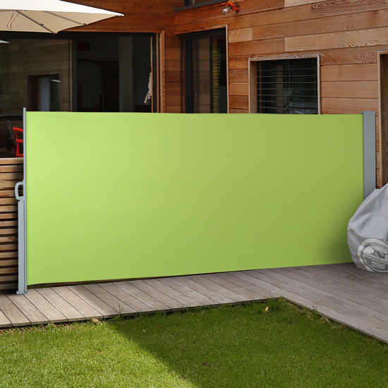 Paravent rétractable vert : il s’intègre naturellement au jardin et aux espaces extérieurs. Toile polyester 280 g/m² avec enduction PU/PA, forte protection UV, respirant et peu d’entretien. Armature aluminium ou acier thermolaqué, résistante à la corrosion et stable. Idéal pour l’ombre, la protection au vent et plus d’intimité.