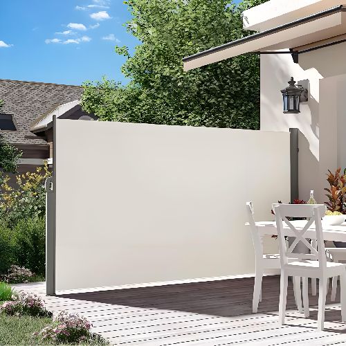 Paravent rétractable blanc : un style minimaliste, idéal pour les extérieurs contemporains. Toile polyester 280 g/m² avec enduction PU/PA, protection UV, respirant et entretien facile. Armature aluminium ou acier thermolaqué, durable et résistante à la corrosion.