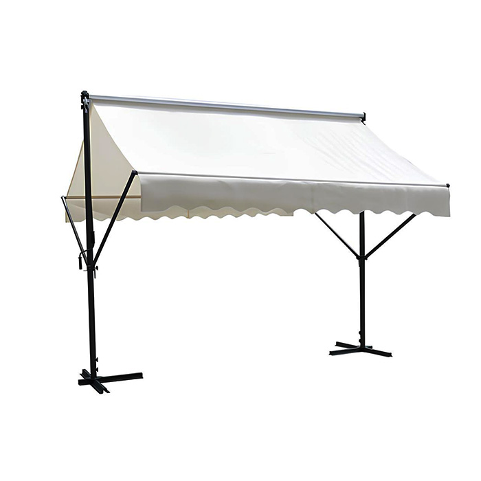 Le store banne autoportant LD-DFSA-009WH est une solution d’ombrage flexible et autonome. Il est idéal pour les espaces extérieurs sans support mural. Sa toile blanche épurée et sa structure à double bras couvrent largement les patios, les balcons et les terrasses de restaurant.
