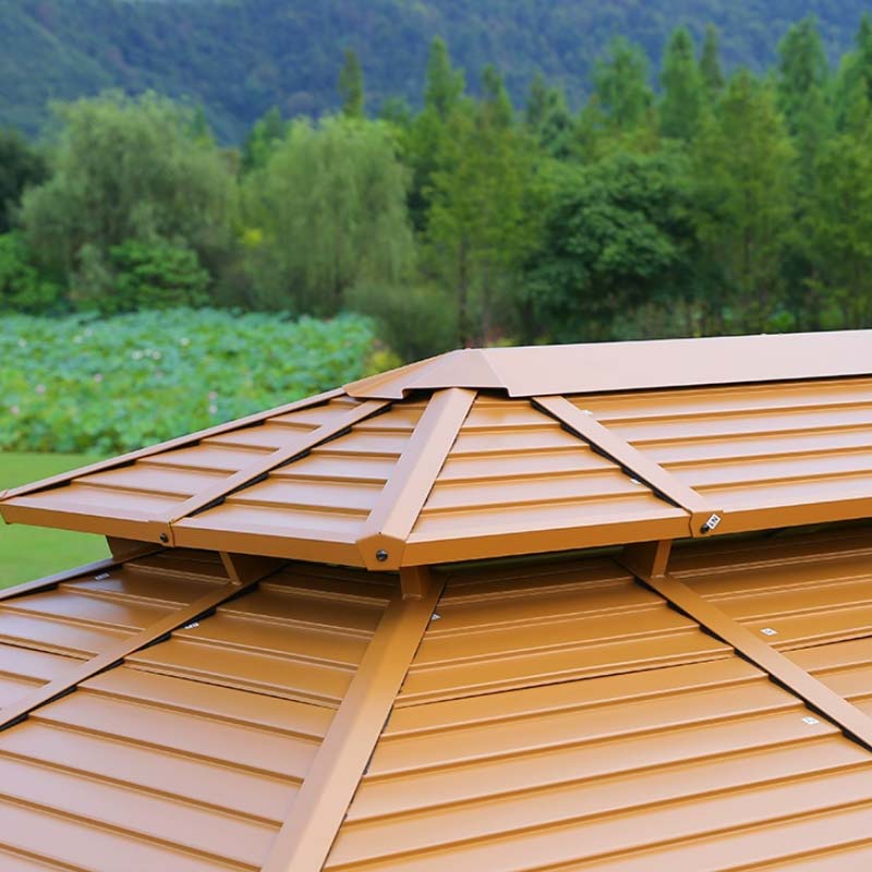 La tonnelle 3 x 4 m en aluminium effet bois avec toit en acier associe une esthétique naturelle à une durabilité exceptionnelle, ce qui en fait un excellent choix pour les marques de mobilier d’extérieur, les grossistes et les revendeurs. La finition imitation bois s’étend sur le cadre en aluminium et sur le toit en acier galvanisé, pour un rendu chaleureux et rustique, sans les contraintes d’entretien du bois naturel.