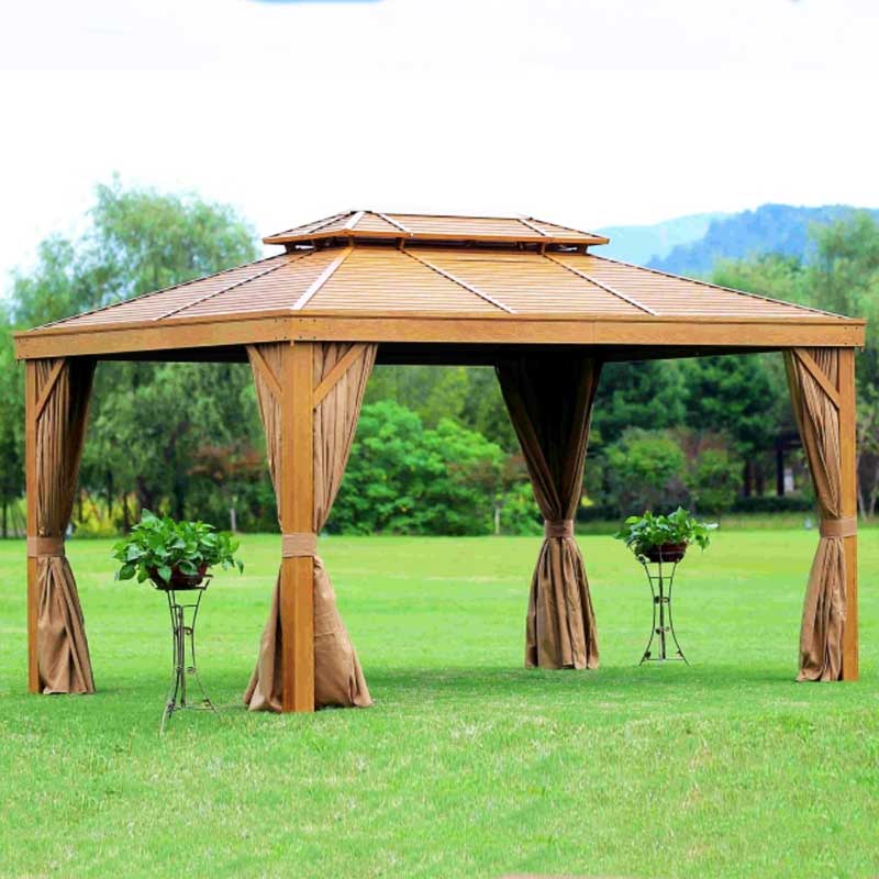 Équipée de rideaux latéraux étanches (polyester 180G avec traitement anti-UV) et d’une moustiquaire (tissu Teslin 270 avec fermetures éclair en résine 8#), la tonnelle crée un espace extérieur privé et confortable. Les options de personnalisation, notamment différents motifs effet bois et différentes couleurs de structure, permettent aux marques et aux distributeurs d’adapter le produit à des besoins de design spécifiques.