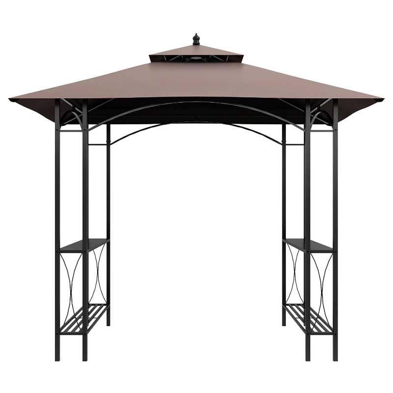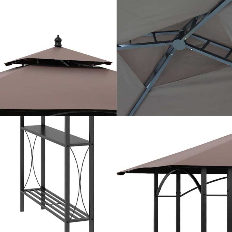 Tonnelle barbecue 1,5 m x 2,4 m avec toit polyester double niveau et structure en acier