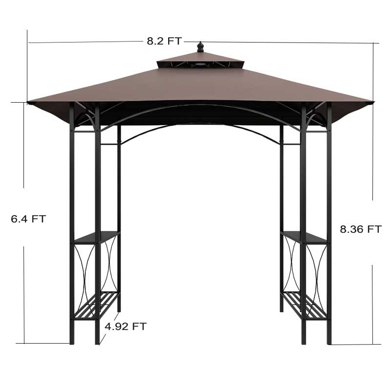 La tonnelle barbecue 1,5 m x 2,4 m de Lida Outdoor est conçue pour durer. Elle combine fonctionnalité et style. Son toit souple à deux niveaux est ventilé et aide à protéger des UV. La conception laisse passer le vent et la fumée du grill plus rapidement. Vous profitez ainsi d’un espace plus frais en été et d’une meilleure stabilité quand il y a du vent.