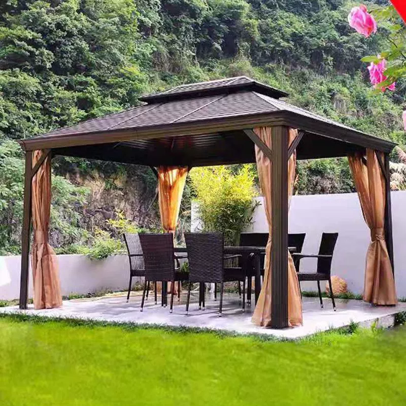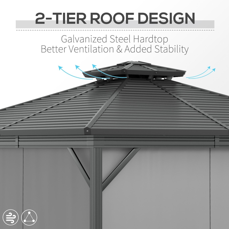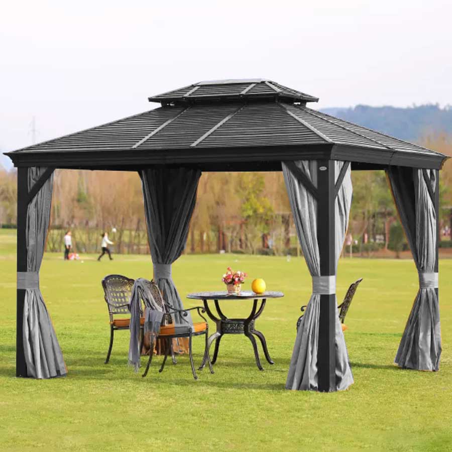 Tonnelle double toit en acier galvanisé 3 m × 3,6 m avec structure en aluminium