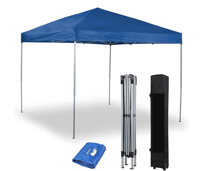 Malgré sa solidité, elle reste étonnamment légère : seulement 14,5 kg. Elle est aussi 20 % plus légère et 10 % plus compacte une fois rangée qu’une tonnelle 3 m × 3 m classique. Elle se transporte facilement et se glisse dans la plupart des coffres de voiture. Le sac à roulettes compact facilite les déplacements, pour une utilisation sur un parking (tailgate), à la plage ou au parc.