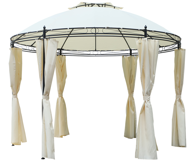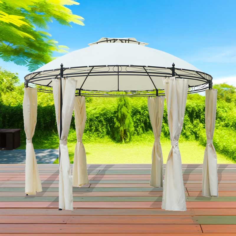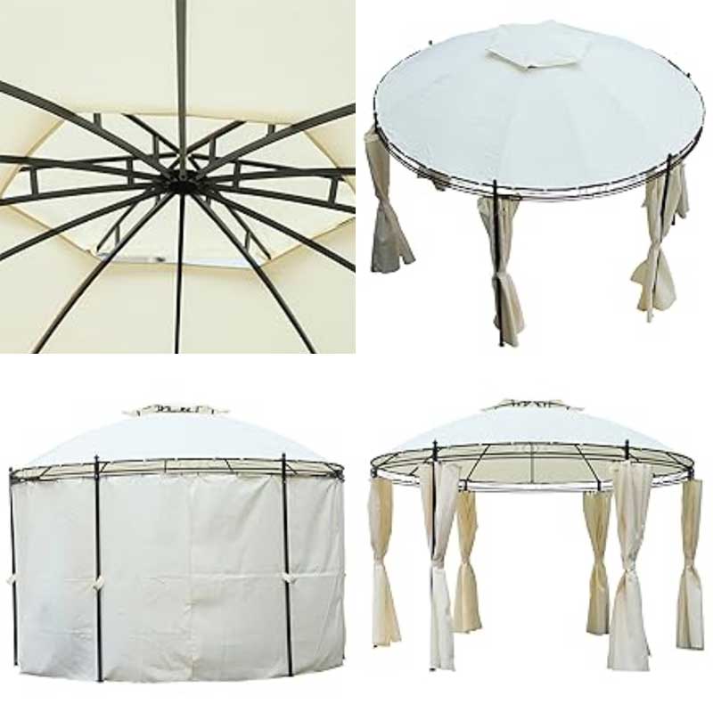 Tonnelle ronde de terrasse 3,5 m à double toit souple et rideaux