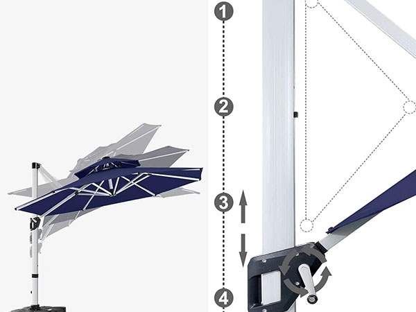 If the locking mechanism is not tight enough, the canopy is more likely to be pulled by gusts, increasing the risk of structural failure or tipping. Therefore, when choosing a cantilever umbrella, ensure the locking system is solid and reliable, and confirm it is properly locked during use to ensure stability in windy conditions.