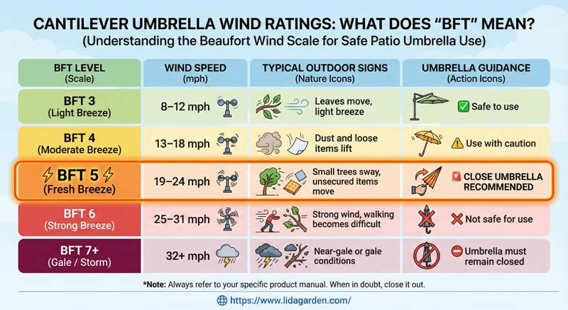 What Does BFT Mean in Cantilever Umbrella Wind Ratings