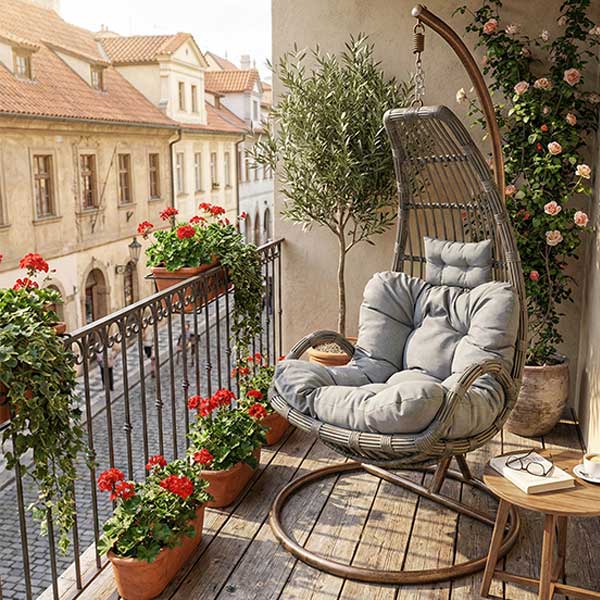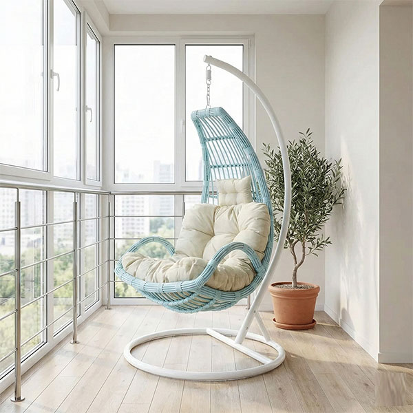 The Half Moon design is proportioned specifically for individual seating, paired with an outdoor-grade cushion that provides reliable support for the back and body. Compared with deeper egg-style chairs, this model offers a more natural sitting posture, suitable for reading, relaxing, or everyday leisure.