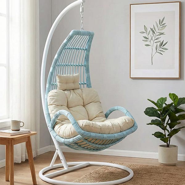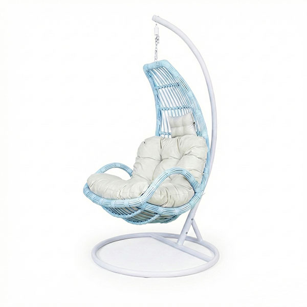 This Half Moon single hanging chair features a distinctive half-moon silhouette that sets it apart from traditional egg-shaped swing chairs. Combining a sturdy metal structure with hand-woven synthetic rattan and a comfortable cushion, it balances visual design with comfort. Suitable for indoor and outdoor leisure spaces. Ideal for distributors, outdoor furniture brands, and project buyers. OEM & ODM services are available.