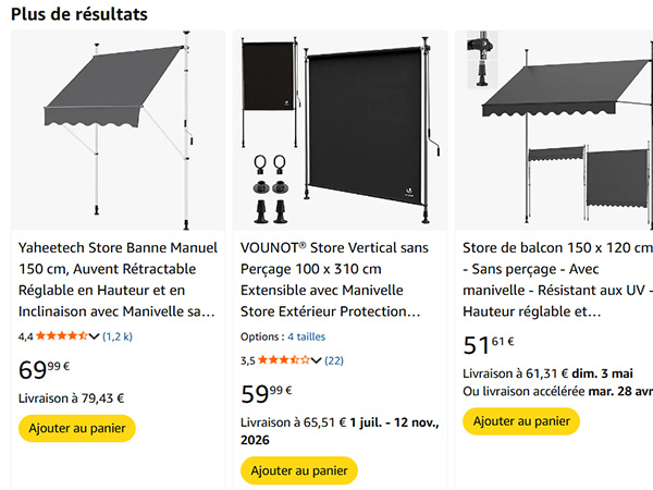 In Germany, this type of product is often sold under the name “Klemmmarkise.” In France, similar products are called “store banne sans perçage.” In Spain, similar wording appears as “toldo sin taladrar.”